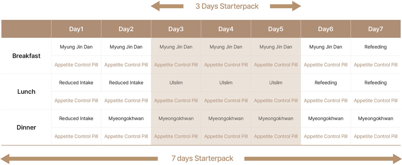 * Myung Ok Hwan: Removes waste accumulated from daily activities and strengthens the immune system, which can weaken during weight loss